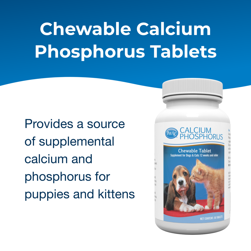 Calcium Phosphorus Tablets es un suplemento nutricional diario que proporciona una fuente suplementaria de calcio y fósforo para cachorros y gatitos. Proporcionar estos dos minerales en una formulación biológicamente disponible ayuda a promover el desarrollo óptimo de los huesos y los dientes durante el período de rápido crecimiento.