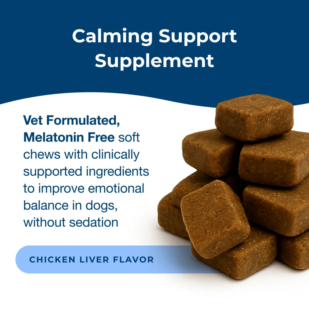 Dyne™ Calming proporciona apoyo conductual no sedante y alivio del estrés para controlar el estrés y la tensión normales provocados por ruidos fuertes, viajes o separaciones, entre otros. Formulado por veterinarios y avalado científicamente, favorece el equilibrio emocional y la salud del sistema nervioso.