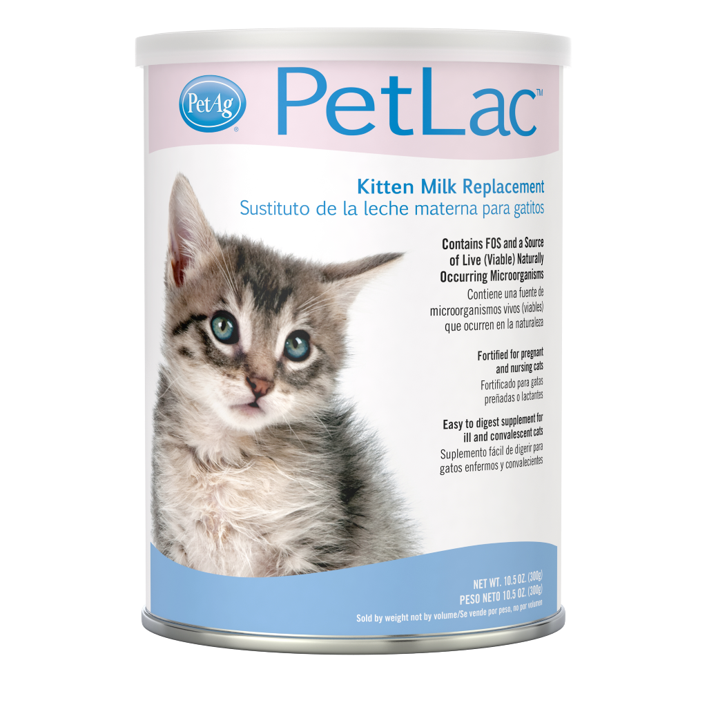KMR, Esbilac y PetLac (cachorros y gatitos) cubren la mayor parte de las necesidades nutricionales de los cachorros y gatitos recién nacidos hasta las 6 semanas de edad y están formulados para parecerse a la leche materna. La principal diferencia entre PetLac y nuestros otros sustitutos de la leche es que PetLac contiene fuentes de proteínas tanto vegetales como lácteas. Si es posible, recomendamos que se permita al recién nacido amamantar a su madre durante un mínimo de 2 días para que reciba el calostro de la madre.